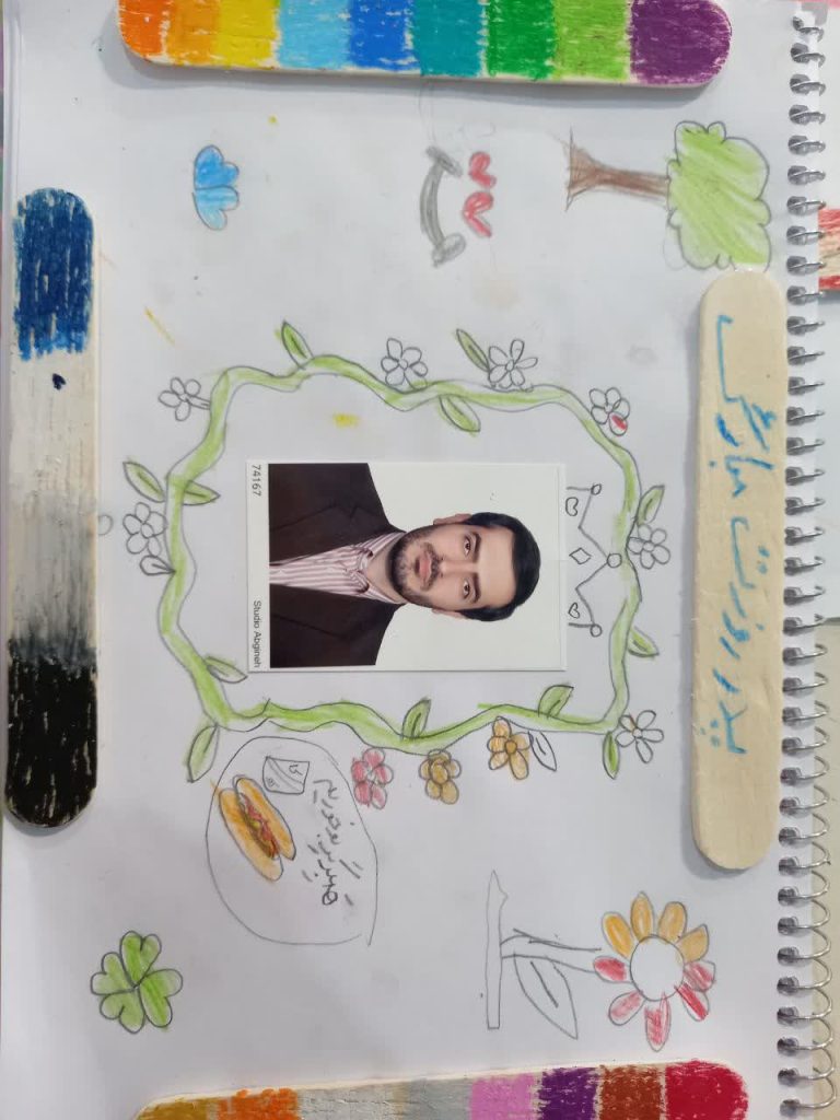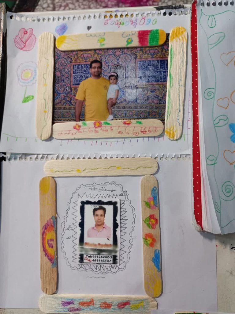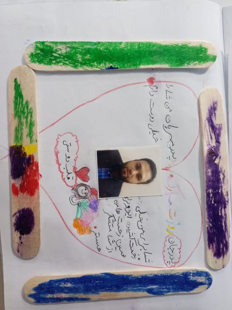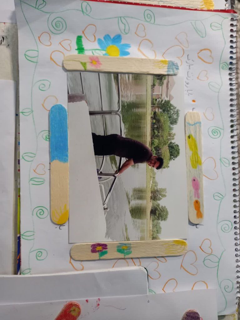 با چوب بستنی هایی که داشتیم برای عکس بابای مهربونم یه قاب زیبا درست کردیم . 👨‍👧 بابا جون قلب من بهترین قاب برای نگهداری مهربونی هایت است . 💕