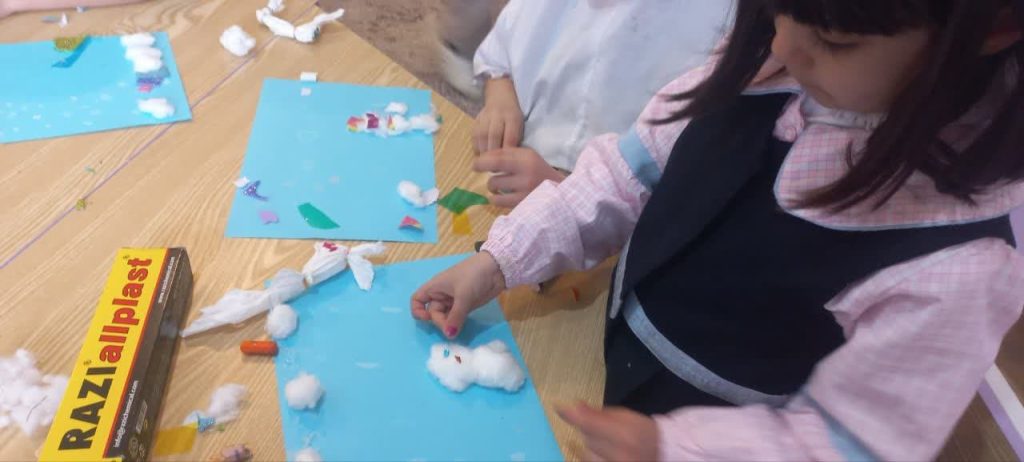 هدف: امروز صبح برف میبارید، با دوستام آن روز را با کمک پنبه ومداد شمعی سفید ساختیم و با آن کلاسمون را تزیین کردیم
