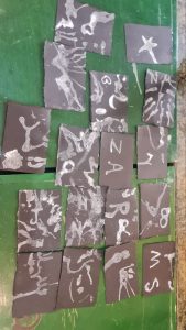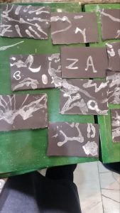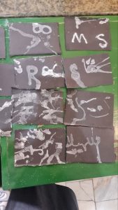 دانش آموزان ابتدا محلول فراسیرشده از آب نمک را درست کردند . سپس با خلاقیت خود اشکالی را با این محلول رسم کردند و آن را خشک کرده و بلورهای این کانی را مشاهده کردند.