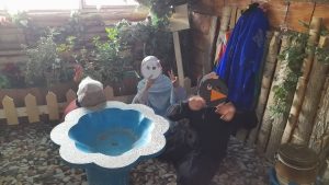 ابتدا در کلاس هنر ماسک‌های مربوط به شخصیت‌های داستان را به صورت گروهی درست کردیم. بعد در زنگ فارسی به تعیین نقش شخصیت‌ها با تِست بازیگری پرداختیم و رای دادیم، کارگردان‌ها هم انتخاب شدند. چندین بار تمرین کرده و تجربه کسب کردیم، تجربه یک کار گروهی ۱۶ نفره!!
