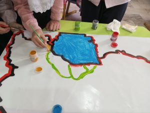با آغاز دهه ی فجر، قصه ی کلاس ما شروع شد. یک دهه ی هیجانی و با نشاط که میخواستیم با ( ایران جان) بیشتر آشنا بشیم . هر کدوم یک شهر را انتخاب کردیم و در مورد مکان های دیدنی ، زیارتی ، خوراکی و پوشش ها تحقیق کردیم و با هم به اشتراک گذاشتیم.حالا نوبت این بود که با کلاس اولی ها و دومی ها این شور و نشاطمون را تقسیم کنیم. روز آخر این قصه ، با کارگروهی نقشه ایرانمان را کامل کردیم.