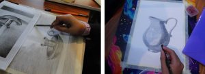 🔺زنگ هنر پایه هفتم ✏️ طراحی اشیا بی جان و سایه زدن با مداد 📸 عکس از دانش آموزان پایه هفتم