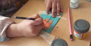 بعد از اینکه رنگ ها را ترکیب کردیم و رنگ مورد علاقه خودمون را درست کردیم طراحی روی چوب را شروع کردیم و یک پازل