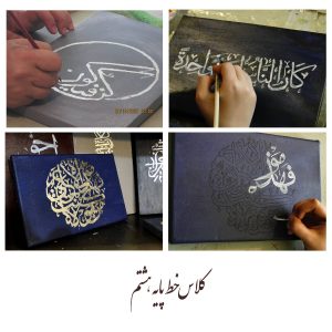 🖋️کارگاه خط: آشنایی با خط ثلث 💛آموزش تکنیک ورق طلا 📸 عکس از دانش آموزان پایه هشتم